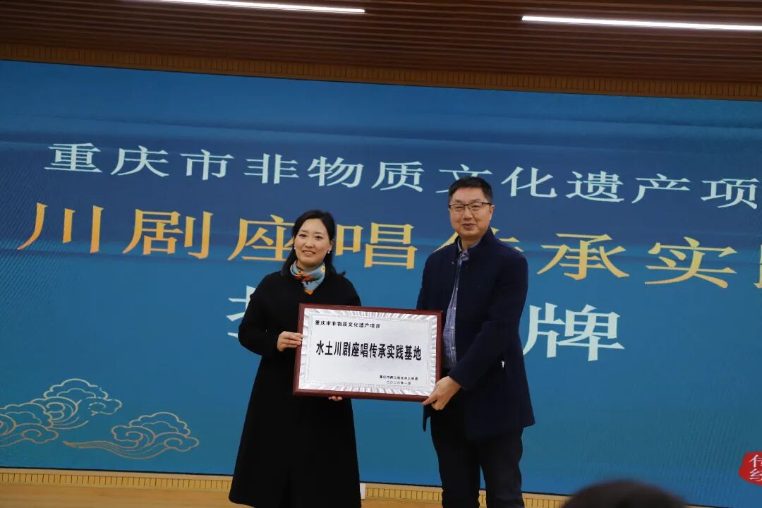 作为源起民国初期、饱含水土人精神寄托的民间艺术,水土川剧座唱于2025年列为重庆市非物质文化遗产项目。在全场瞩目下,水土街道办事处向文主任为学校授牌,江义玲校长上台揭牌,一块牌匾连接起川剧百年历史与未来希望。