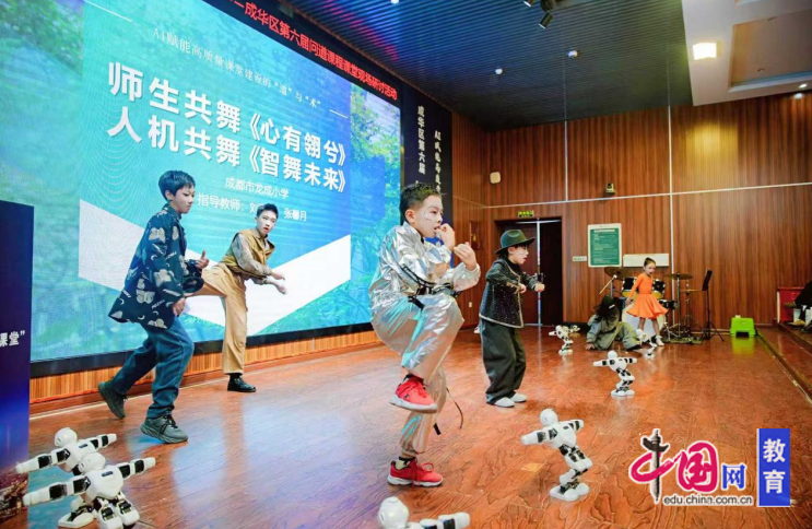 在成都市龙成小学学术厅中,暖意融融,文脉氤氲。由该校“小葫芦”陶笛乐团带来的陶笛七重奏《豆豆龙》清音流淌,如“空谷幽兰,暗香浮动”;合唱《成都的方向》童声澄澈,似“天籁穿林,不染尘俗”;《智舞未来》中,学生与机器人舞伴默契共舞,翩跹姿态宛若“流风回雪,灵动翩跹”。暖场活动层层递进,点燃现场热烈氛围,童声与智舞共鸣,传统与现代交融,恰是“知行合一,美育润心”,生动诠释了“悦美教育”与智能科技的和谐共生,让在场嘉宾沉浸式感受教育创新的鲜活脉动与人文温度。