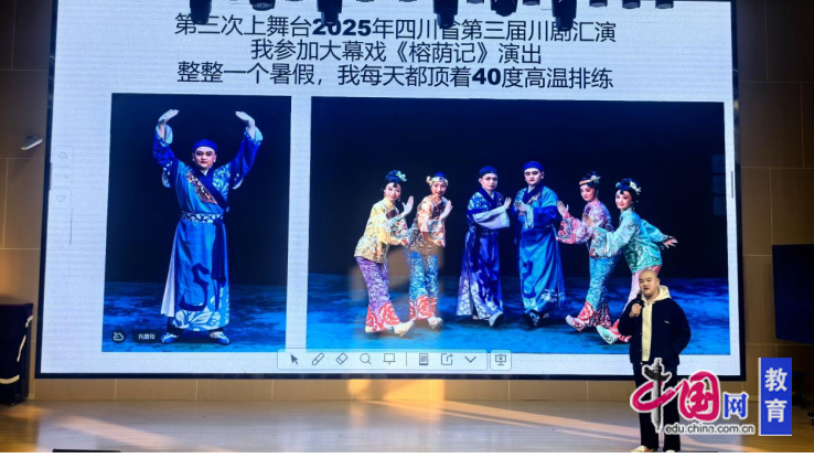 表演结束后,黄子彧结合自己学习川剧的经历,劝勉同学们:“吃不了学习的苦,终要吃生活或热爱里的苦”。黄子彧讲道,曾经以为换条少学习文化课的路能轻松些,却发现川剧净角的修行里,藏着日复一日的功底打磨、唱腔锤炼,这和学习文化知识的苦一样,都是绕不开的积累。但好在他在川剧艺术中找到自信与快乐,诠释了“台上一分钟,台下十年功”的坚守,也印证了“条条大路通罗马”从不是逃避的借口,而是选对方向后咬牙坚持的底气。