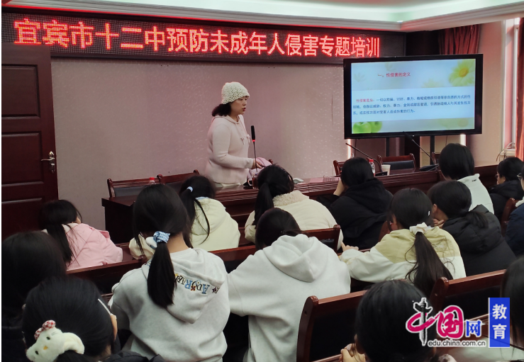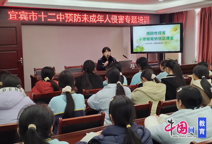 1月15日,宜宾市第十二中学校特邀西郊派出所民警邹滨羽进校,为该校女生开展了一场题为“守护青春,远离侵害”的预防性侵害安全教育专题讲座。