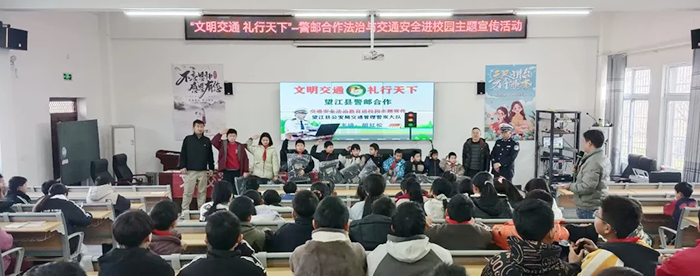 为进一步强化青少年交通安全意识,1月14日上午,望江县公安局交通管理警察大队与望江县邮政公司携手走进鸦滩中心学校,联合开展“文明交通 礼行天下”交通安全进校园主题宣传活动。