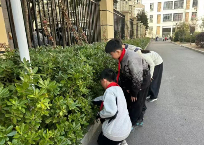 诵读结束后,大队委们带领部分学生代表手持清洁工具前往校园绿化带及各个角落开展捡垃圾实践活动。大家弯腰俯身,认真捡拾纸屑、果皮、塑料瓶等杂物,用双手清理校园环境,用行动践行“美化校园”的承诺,让生态文明教育在实践中落地。这一举措既呼应了“985”工作体系中“实践教育”“体质教育”的要求,锤炼了学生劳动技能与协作能力,更将“美化心灵”的内涵转化为爱护环境、担当责任的实际行动。