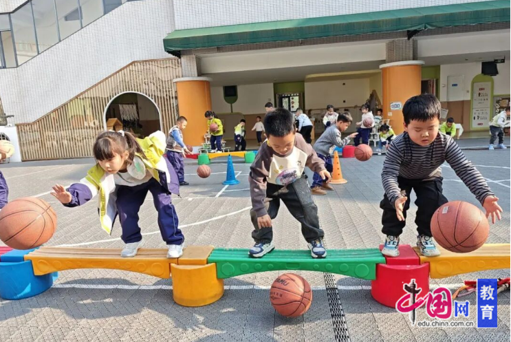 活动从孩子们最生动的日常开始。家委会成员们走进操场,观摩大班幼儿充满活力与挑战的户外体能大循环。在大班教研组长周英老师的专业解读下,跳跃、攀爬、平衡、合作等这些充满生命力的活动,正是“健康第一”“在挑战中学习”等教育理念在真实场景中的自然渗透。