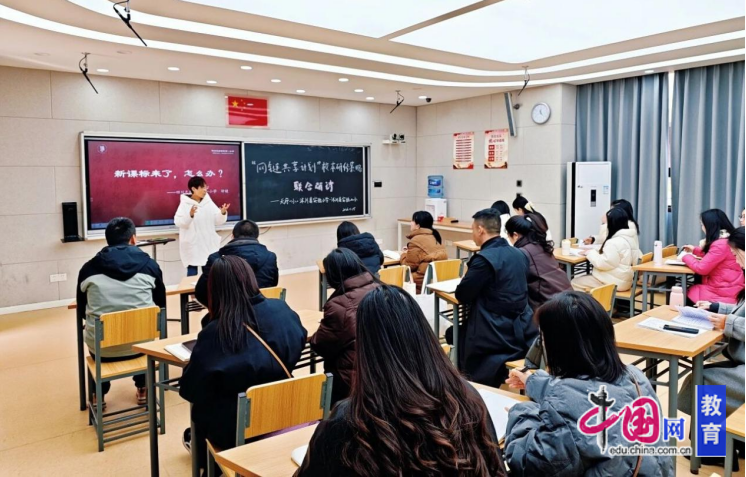 天府一小副校长钟键主持的专题交流将此次活动推向高潮。她以《新课标来了,怎么办?》为题,与老师们共享天府一小应对“问题”的“策略”。2022年4月,“新课标”以鼎新革故之势来到了教学的现实世界。鼎新革故意味着部分或者全部打破习惯的稳态,也导致困惑与焦虑交织。“共识具体目标,深研具体思路,共践具体策略。”天府一小始终坚持以实事求是的“三个具体”贯彻好新课标。