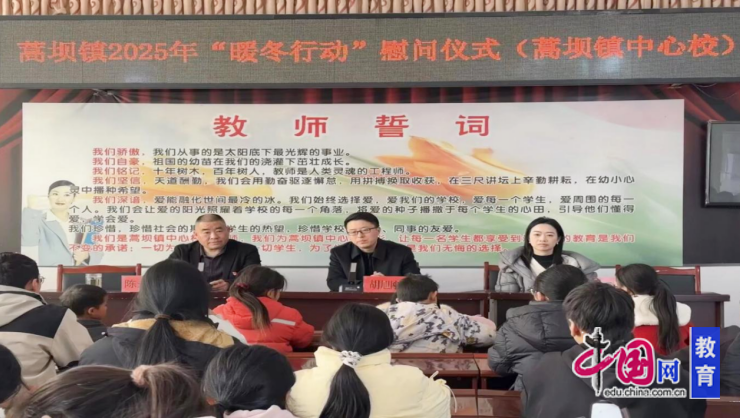为切实关心少年儿童健康成长,传递党和政府的冬日温情,1月16日,宜宾市筠连县蒿坝镇党委副书记、镇长胡旭刚,人大主席王兰一行走进蒿坝镇中心校开展“暖冬行动”慰问活动,不仅为孩子们送上慰问金,更寄予殷切嘱托与深切关怀,让料峭冬日里的校园暖意融融、温情四溢。