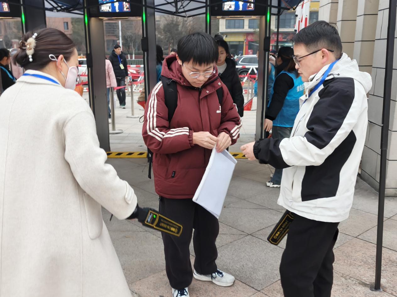 规范考试场所,强化技防人防。所有考生均在高清标准化考点应考,考点严格执行“两道关口”金属探测检查制度,在考点大门口和各考场门口依次开展规范安检,坚决防范手机等通讯工具作弊。监考人员严格遵循考务程序开展工作,实现人防与技防有机结合,筑牢考试安全防线。
