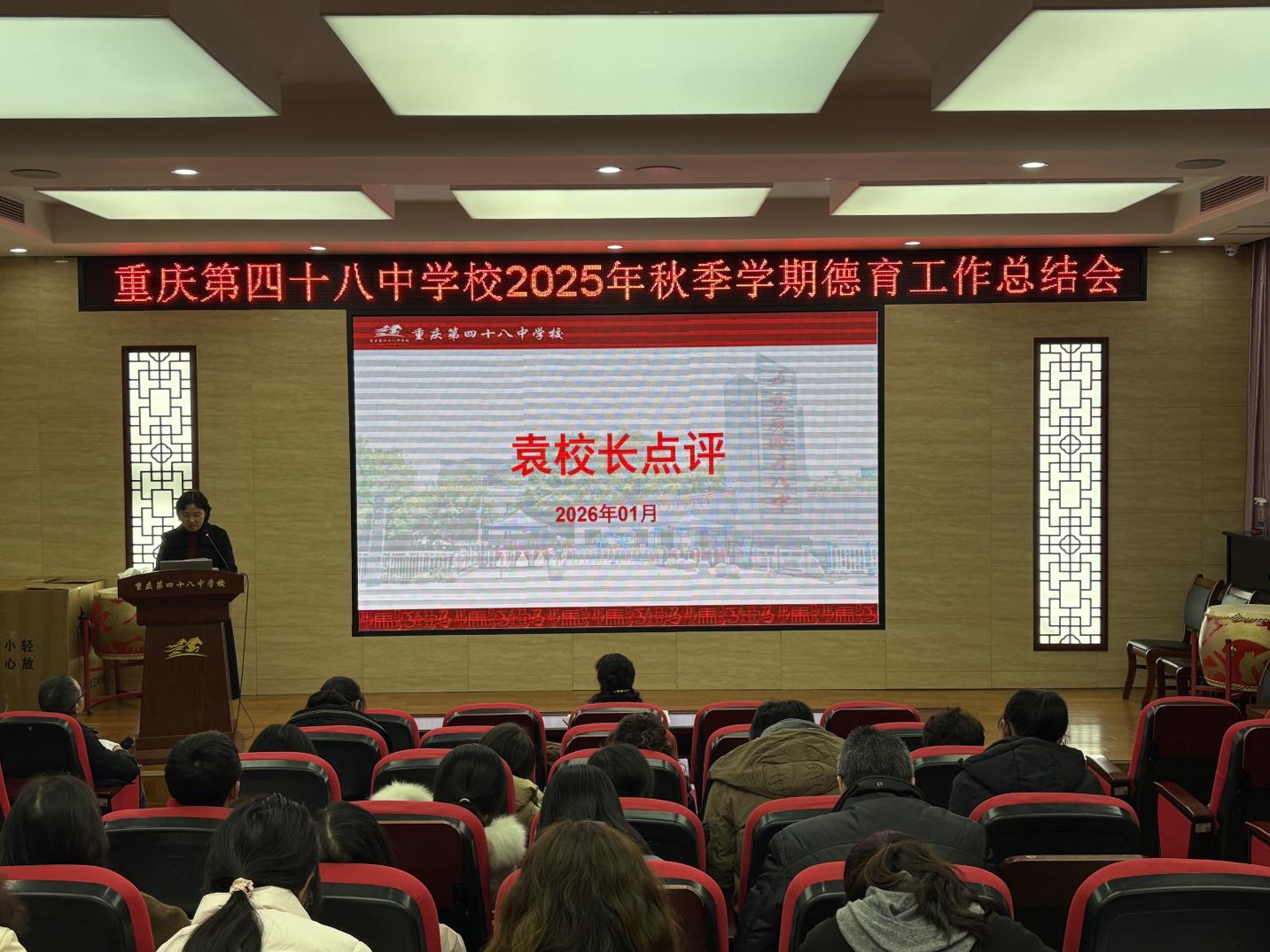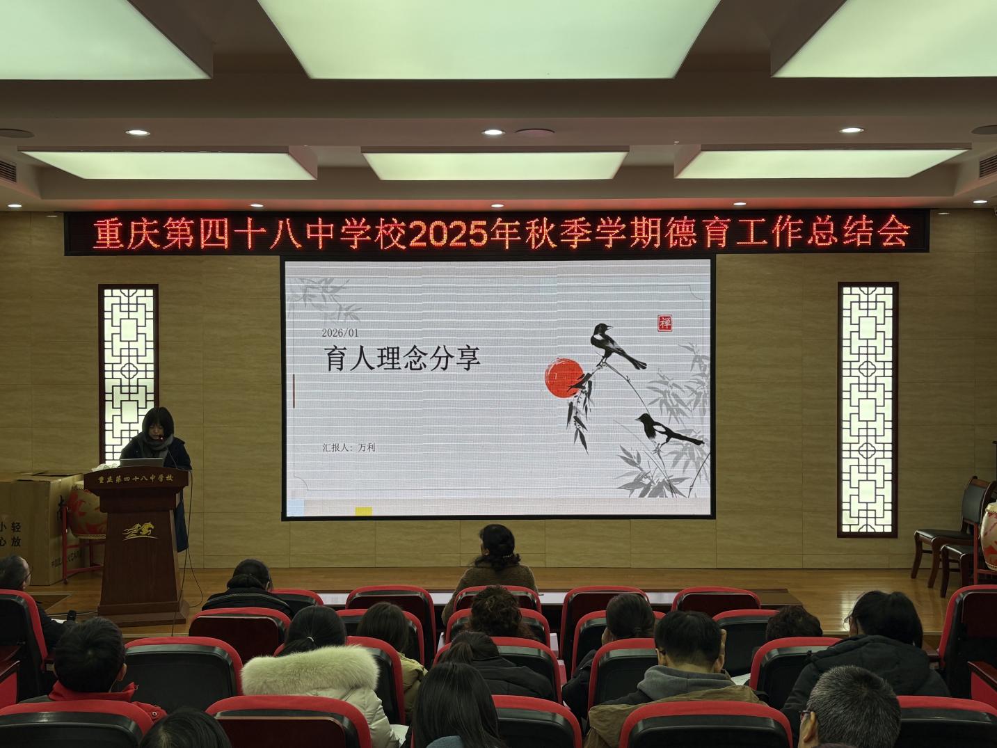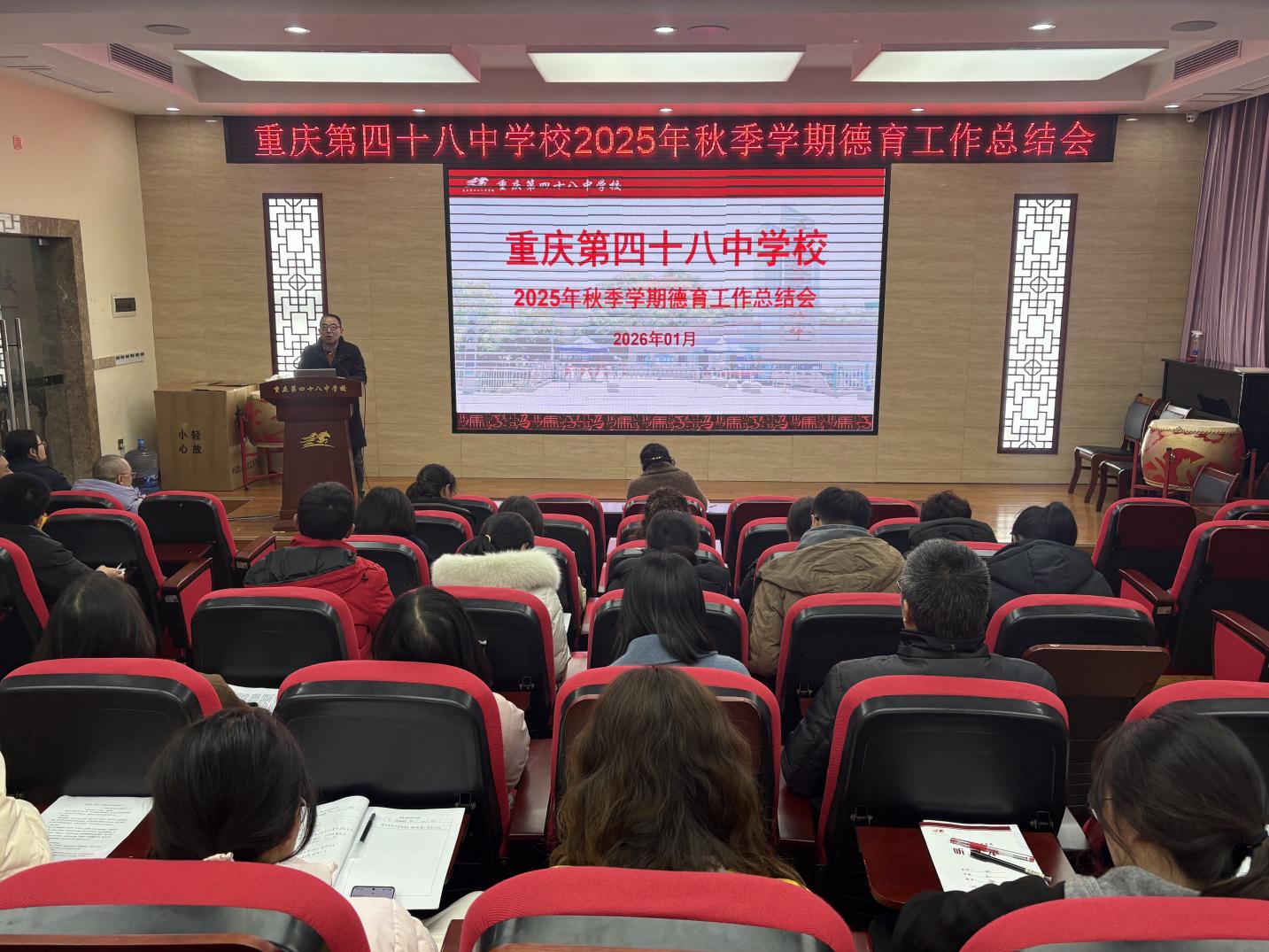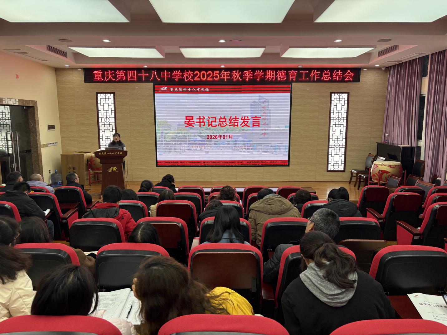 为进一步夯实德育工作根基,凝聚育人智慧,提升班主任队伍专业素养,2026年1月19日,重庆第四十八中学校召开2025年秋季学期德育工作经验分享暨期末总结会。学校党总支书记晏祥兰、校长袁小林、德育副校长王先健、德育处及全体班主任共同参加了本次会议,会议由王先健副校长主持。