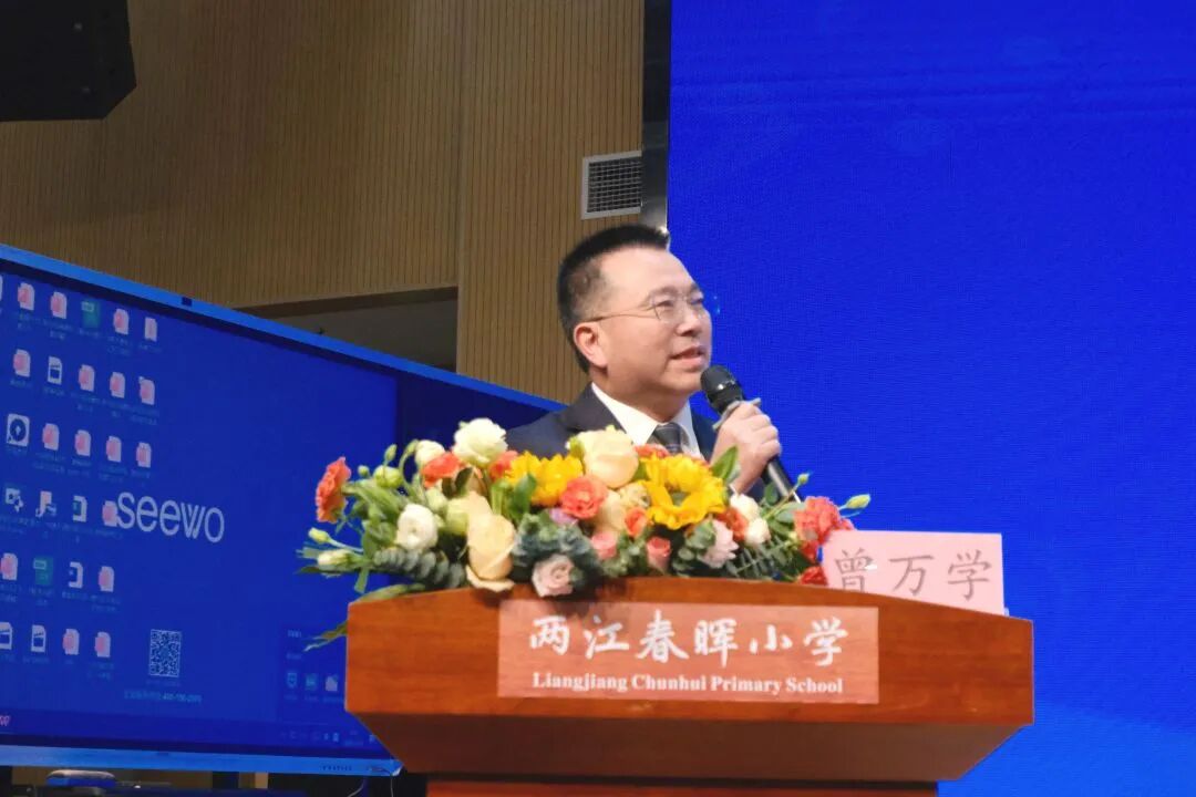 原两江新区教育发展研究院院长曾万学从区域教育协同发展的高度,解读“智教慧学”的深层内涵,重申“育人”是语文教学的灵魂所在。他寄语教师珍视跨区域教研平台,在思维碰撞中凝聚共识,在交流中共创教学新生态。