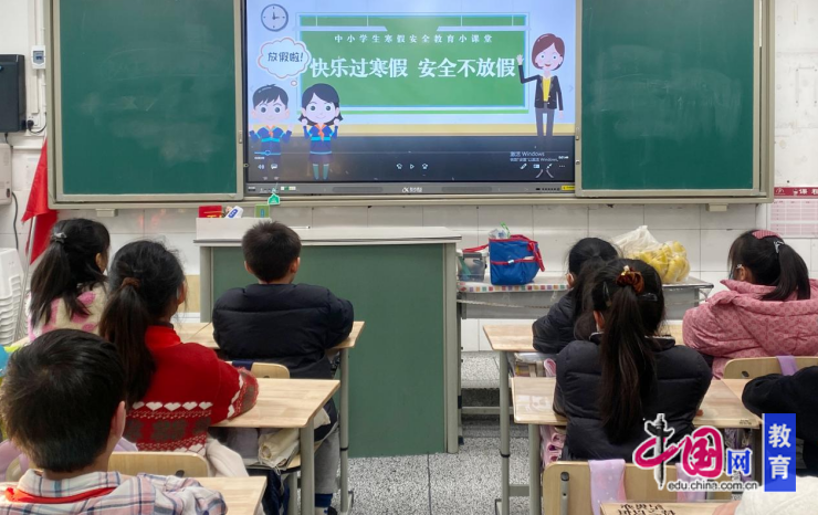 一校一课,推动安全教育全程育人。该校常态化开展安全教育班会,各班通过播放安全教育微课、讲解安全案例、组织学生积极讨论等形式,以相关安全数据和贴近学生生活的真实案例,直观展示课间活动或上下学交通、安全用电用气等方面可能存在的安全隐患,对学生进行居家安全、防溺水与防冻安全、交通安全、网络安全、烟花爆竹安全等教育,引导学生树立正确的安全观念,掌握必要的安全知识和技能。安全教育的场域从课堂延伸至校园每个角落。宣传栏、电子屏和主题展板都润物细无声地营造出“人人讲安全、处处是课堂”的浓厚氛围。