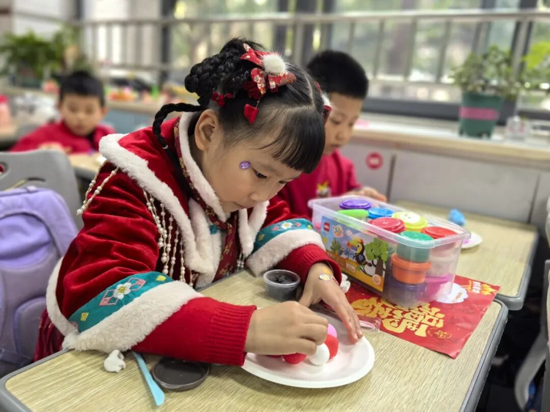 语文活动区里的“妙语连珠送祝福”和“童声朗朗诵新春”两项活动,将语言运用与文化浸润融为一体。孩子们观察年画,在表达中传递亲情;吟诵古诗,在韵律里亲近传统,生动展现了语文素养在真实情境中的自然生长。