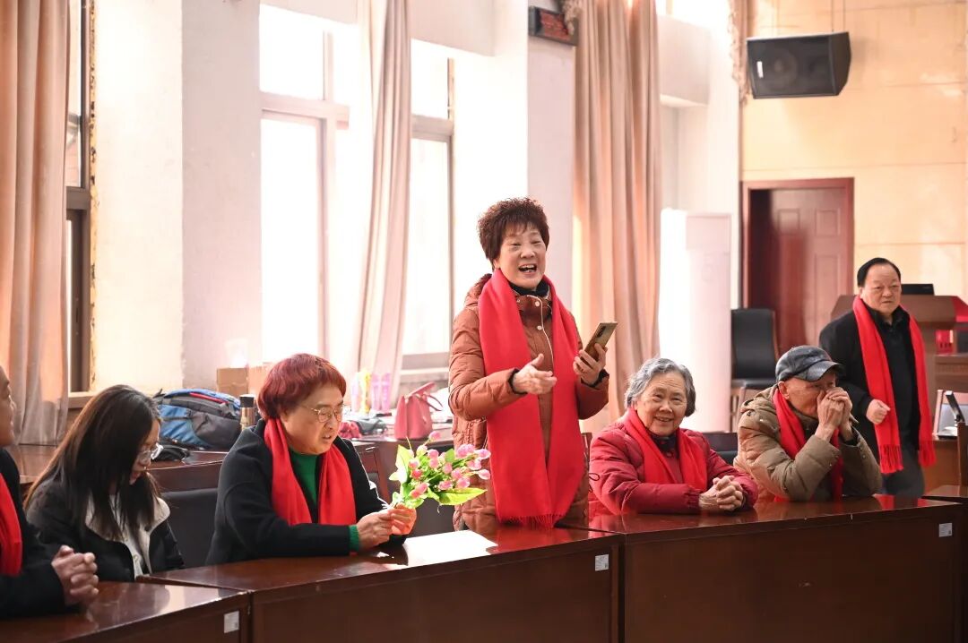 赵屹环和罗元玉老师还自告奋勇地为大家演唱了《花又期》,歌曲婉转动听,抒发了对家国的赤诚、对至亲的眷念以及对时光流逝、生命意义的哲思。活动在大家齐唱《最美不过夕阳红》的歌声中落下帷幕。