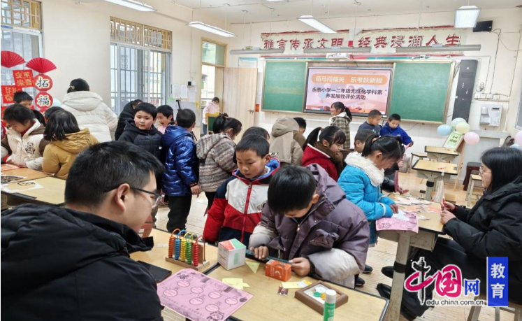 1月19日,绵阳市盐亭县永泰镇中心小学欢歌笑语满校园,围绕“萌马闯福关,乐考跃新程”主题,专为一二年级学生打造的无纸化学科素养评价活动温馨启幕。活动紧扣“双减”政策,打破传统纸笔测试模式,更将非遗拓印文化融入趣味闯关,让学生感受传统文化魅力。