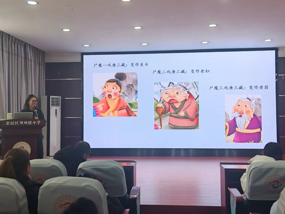 黎老师则围绕《西游记》“三打白骨精”经典片段,以“猜人物、演情节、讲故事”层层推进,让孩子们在游戏中感受孙悟空的机智与勇敢。两位老师精彩的授课,将深奥的名著内涵转化为孩童易懂的语言,将单向的阅读转化为双向的互动,会场始终洋溢着童真与热情,真正实现了“在玩中学,在乐中读”。