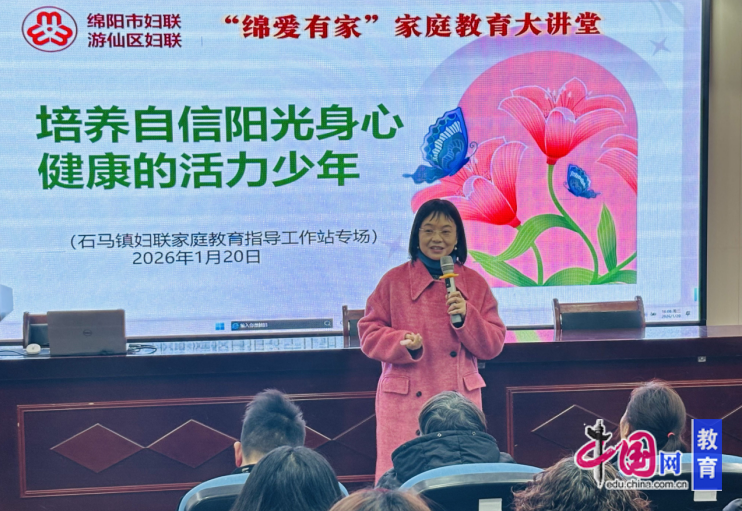 1月20日,石马镇妇联特邀游仙区“YOU爱”家庭教育指导中心唐子霖老师,在绵阳市游仙区石马小学开展题为《培养自信阳光身心健康的活力少年》的家庭教育专题讲座。此次活动由石马镇妇联家庭教育指导工作站主办,石马小学协办,旨在帮助家长在寒假期间科学引导孩子健康成长。
