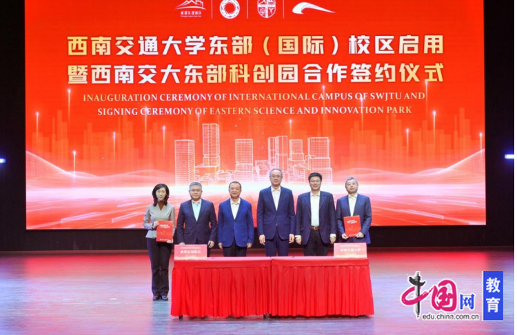 “大鹏一日同风起,扶摇直上九万里。”当日,四川省政协副主席杨丹,成都市政协副主席、成都东部新区党工委书记詹庆,西南交通大学党委书记余敏明、校长闫学东等领导嘉宾与师生代表齐聚一堂,共同见证这所百年名校“一校两地四校区”新格局的正式落成,一同感受校地协同、科教融汇的磅礴力量。今后,这里将成为人才辈出的“摇篮”、科技创新的“高地”、校地合作的“样板”,让百年“交大”的薪火在绛溪河畔代代相传,为全面建设社会主义现代化强国、以中国式现代化全面推进中华民族伟大复兴贡献源源不断的“交大”力量。