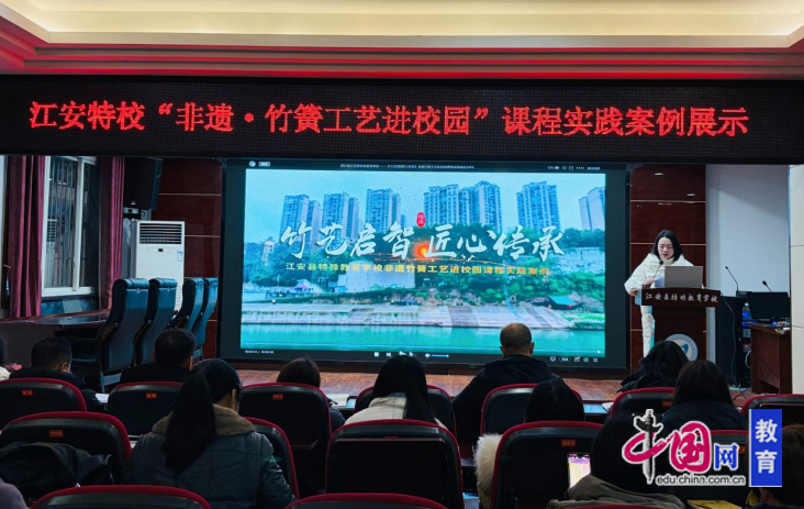 1月21日,宜宾市江安县特殊教育学校开展了一场别开生面的“非遗·竹簧工艺进校园”课程实践成果展示。活动现场,教导处主任兰盛瑜分享了学校在非遗融合特教方面的探索与经验。