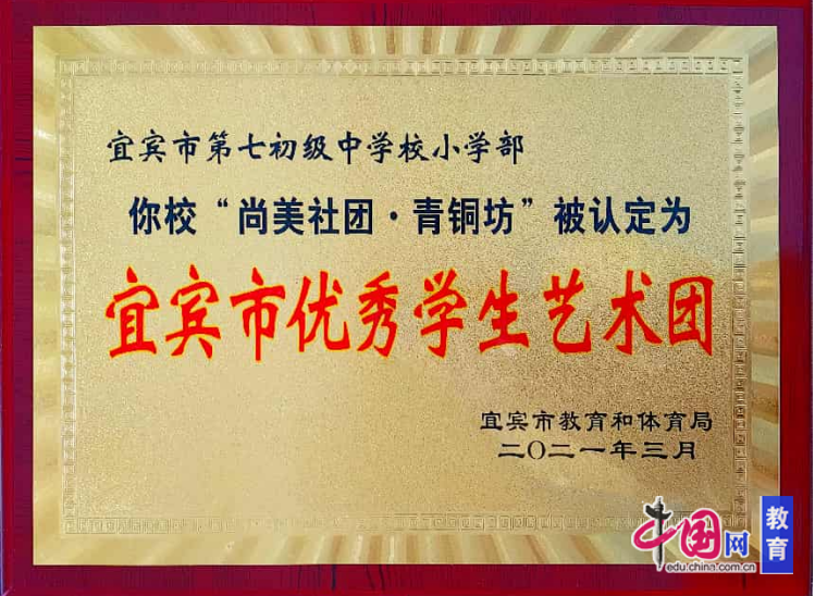 在特色课程建设上,他倾注了大量心血。2019年9月,他指导的学生青铜浮雕画系列作品在翠屏区第九届、第十届中小学生艺术展演活动中斩获一、二、三等奖,初露锋芒。2021年3月,他所执教的“青铜坊”社团被宜宾市教育体育局认定为“宜宾市优秀学生艺术团”;同年9月,他指导的尚美社团·青铜坊在翠屏区第十届中小学生艺术展演活动中荣获学生艺术实践工作坊(文创空间)一等奖,并代表三江新区参加了宜宾市第十届中小学生艺术节展演活动,长江首城中小学生体育艺术节美术类展演活动获得广泛好评。