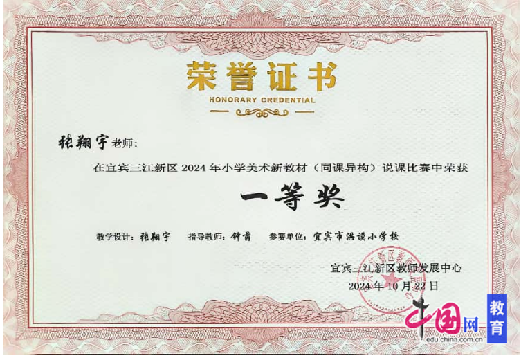 在教学成果与案例研究方面,张翔宇同样硕果累累。他设计的大单元教学《你好青铜!》在宜宾市中小学“融入乡土资源培养学生美术核心素养”美术大单元教学设计竞赛中荣获一等奖,撰写的美育改革创新优秀案例《熠熠青铜 灼灼其华》荣获翠屏区第十届中小学生艺术展评活动二等奖。为了让课程更具深度与广度,他参与的区级课题《青铜文化融入美术社团教学提升小学生艺术表现能力的实践研究》已结题,标志着他的美育科研迈上了新台阶。此外,他还积极参与四川省中小学作业设计大赛,凭借作品《第二单元融合之美》荣获省级一等奖,他撰写的论文《青铜文化融入小学美术教学提升学生核心素养》,在四川省教育科学研究院2024年美术、影视教育优秀论文评选活动中荣获小学组二等奖。这一系列荣誉,见证了他从社团指导到课程开发,再到科研引领的坚实足迹。