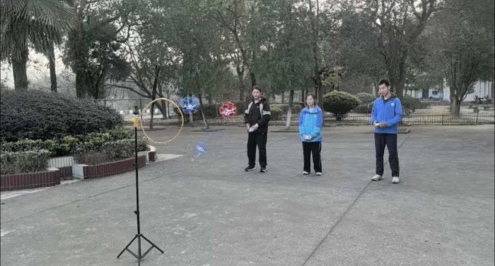 科技创新社团的展示充满科技魅力,创意发明、科技小制作尽显学子创新思维;无人机钻圈表演更是将现场气氛推向高潮,操控手精准操作,无人机穿梭于障碍圈中,灵活翻飞、行云流水,让师生们领略到科技的趣味与力量。