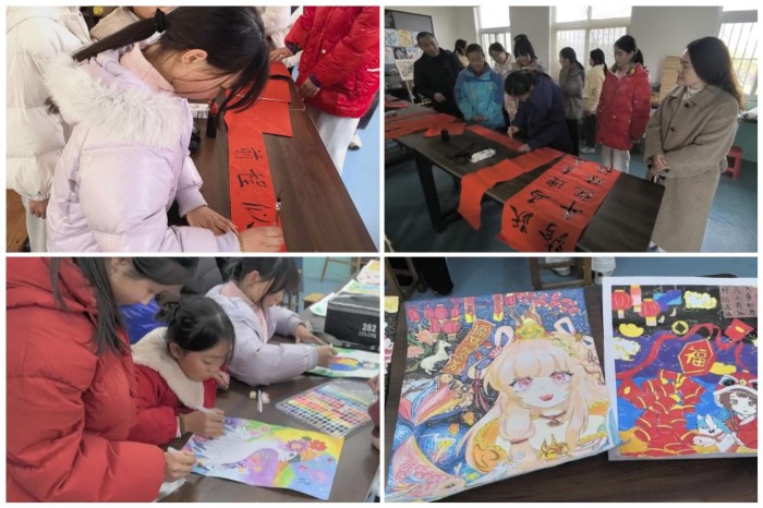 绘画社团以作品展的形式,将学生们的绘画、手工等佳作集中展示,让师生们在驻足观赏中感受视觉之美;书法社团同步开展作品展示与现场书写活动,师生同台挥毫写春联,一幅幅寓意吉祥的春联,为校园增添了浓浓的新年氛围。