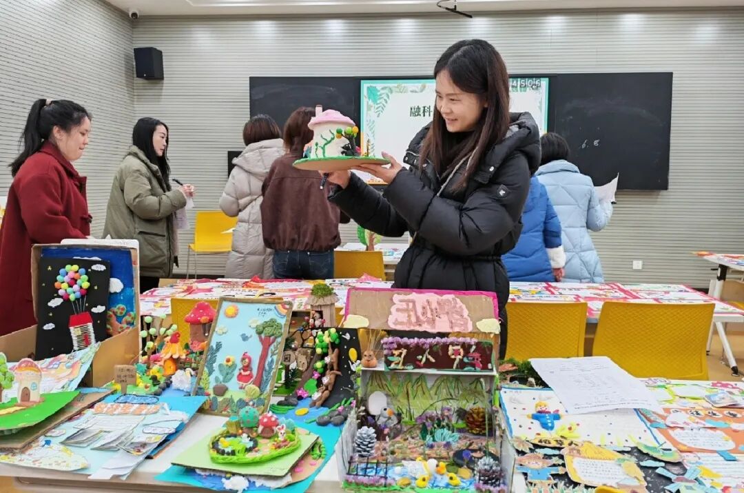 评比现场,老师们手持评价表,穿梭于各个展区,认真观摩每一件作品,对照标准逐项评审、细致打分,专业严谨的态度尽显育人初心。