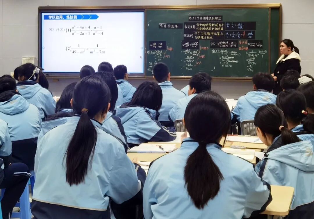 数学罗健镭老师在《分式的乘除法》一课中,以“双线并行”的思路展开教学:明线以分数类比推演分式的乘除运算法则,暗线则巧妙融入袁隆平院士的“水稻梦”。学生在类比迁移中掌握知识,并通过分层练习逐步巩固。课堂结合水稻产量计算等现实问题,引导学生将数学应用于实际,深化理解。最后,进一步探讨数学在科学研究中的重要作用,传递探索与创新的科学精神。整节课既注重技能培养,又渗透情感教育,生动诠释了数学源于生活、用于生活的育人理念。