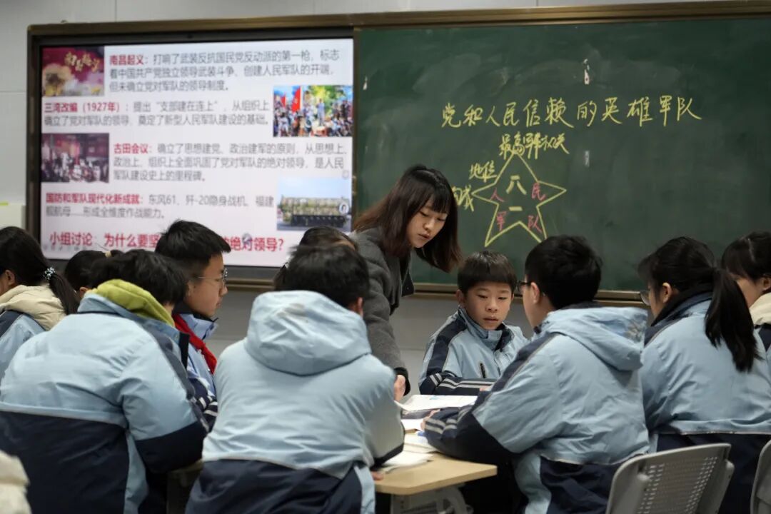 政治冯学治老师在课堂上,引入“军种标识盲盒”与AI搜索活动,结合人民军队在战斗、抗疫、救灾中的感人故事,让学生真切体悟到:人民军队是中国特色社会主义的坚强柱石,忠诚与担当皆可触、可感、可敬。