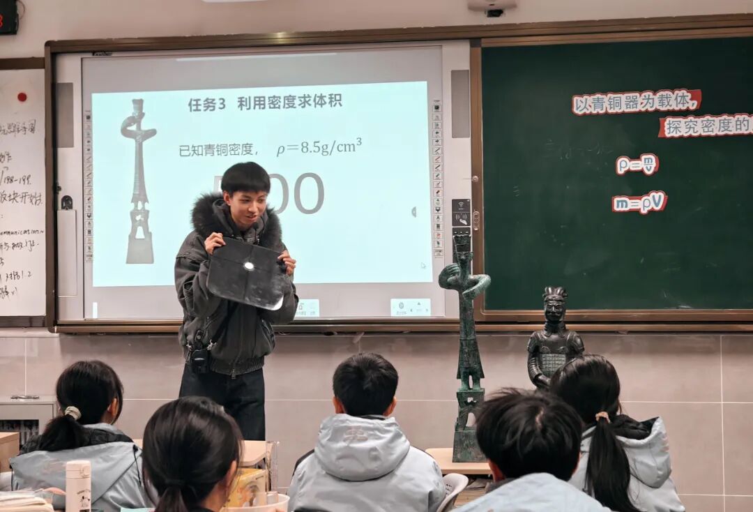 物理冯思达老师在《密度的应用》一课中,以“青铜器鉴别”为任务主线,引领学生运用密度知识解决实际问题,并借助AI技术创设古今对话情境,让理性思维与人文情怀交汇,课堂既生动亦深刻。
