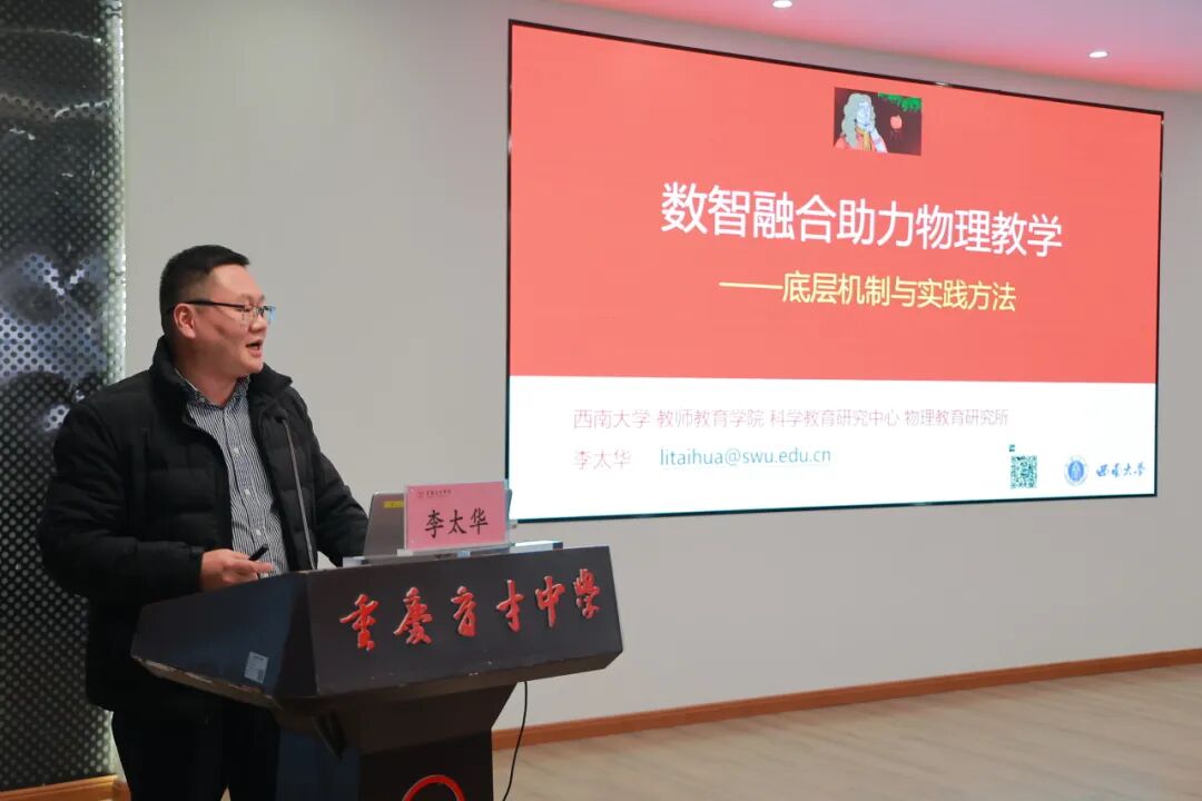 西南大学李太华教授带来《数智融合助力物理教学 —— 底层机制与实践方法》主旨报告。他从人类与人工智能学习物理的本质区别切入,结合鲜活实践案例,深入剖析物理实验的核心价值、数字化仿真对学生认知的支撑作用,以及人工智能赋能教学的实操路径,为现场教师带来兼具理论深度与实践温度的专业指引,引发热烈思考。