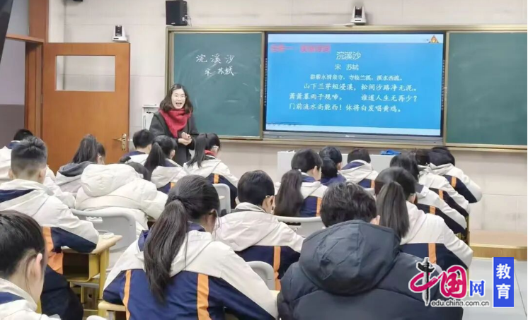 宋丽平老师进行了《浣溪沙》的公开课,教学中教师立足六年级学生的认知特点与语文核心素养要求,以诗词为载体,搭建起“诵读品悟—知人论世—学以致用”的教学框架。教师将“读”作为诗词教学的主线,设计了“初读正音—再读会意—品读悟情”的分层诵读环节。教学难点“谁道人生无再少”所蕴含的豁达哲理。教师并未直接灌输,补充“乌台诗案”后苏轼被贬黄州的创作背景,为学生搭建理解的桥梁。针对“溪水西流”“唱黄鸡”等关键意象,教师补充“河流东流入海的常规认知”与“白居易黄鸡催老的典故”,通过对比分析,让学生清晰地领悟到苏轼反用典故的妙处,以及身处逆境却乐观向上的人生态度,人文教育润物无声。