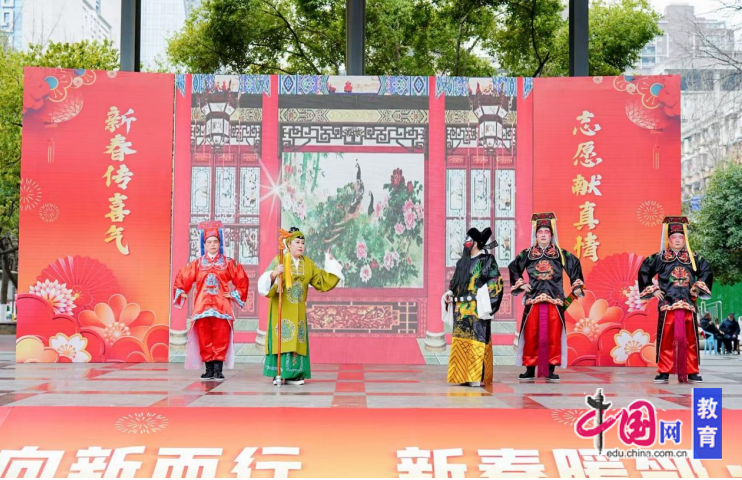活动伊始,非遗川剧变脸便凭借五彩脸谱与惊险吐火绝技惊艳全场,社区群众带来的特色歌舞轮番上演,将新春的喜悦与幸福传递给在场每一位观众。同时,石羊街道仁和之声艺术团、中和街道新会社区、桂溪街道南新社区、西园街道天全社区的志愿者们带来女声小合唱《鼓浪屿之波》、戏曲舞蹈《粉墨花旦》、情景朗诵《太行奶娘》等精彩节目,以歌舞、戏曲、朗诵等多元形式,生动诠释“奉献、友爱、互助、进步”的志愿精神。