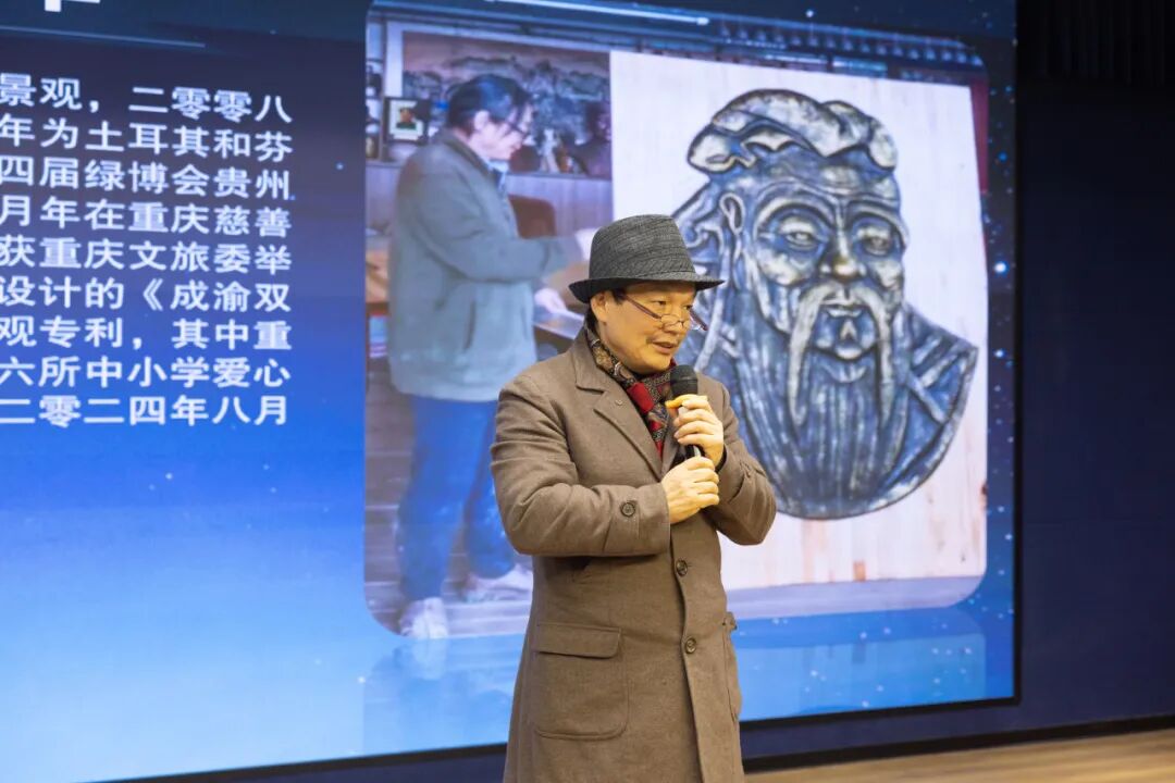 交接仪式后,王希军先生带来精彩的童源讲堂。他分享了雕塑创作背后的故事与文化内涵,结合自身深耕艺术领域数十年的经历,解读了行知精神与艺术创作的内在关联。据悉,王希军先生多年来热心教育公益,已为十六所中小学捐赠古代圣贤雕塑,价值超二百万元,其作品兼具艺术价值与教育意义,部分已被中国三峡博物馆收藏。此次讲堂让师生们近距离感受艺术与精神的碰撞,深化了对行知教育思想的理解。