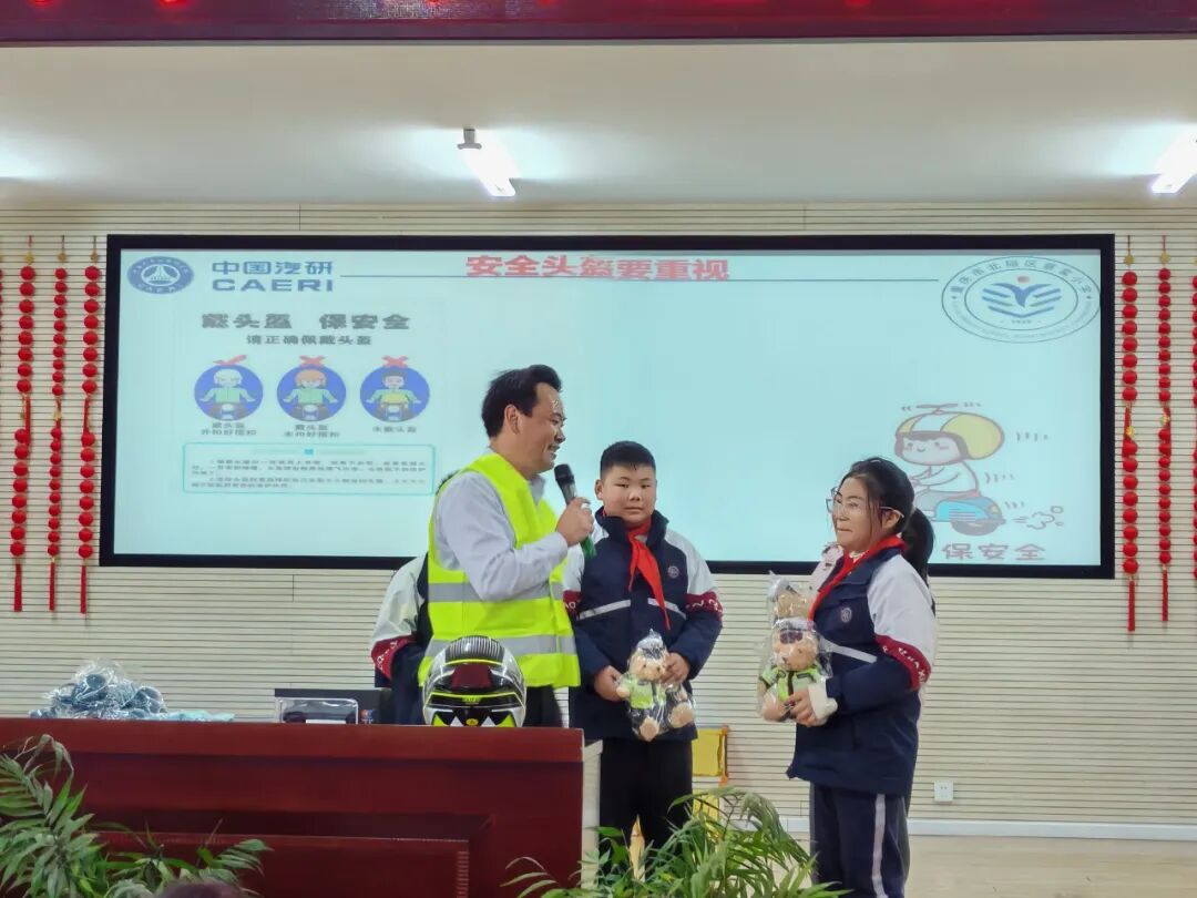 汽车文化课堂中,作为家委会成员,家长精心准备课件,为女儿所在的班级及年级讲授汽车安全知识、中国汽车工业发展史。
