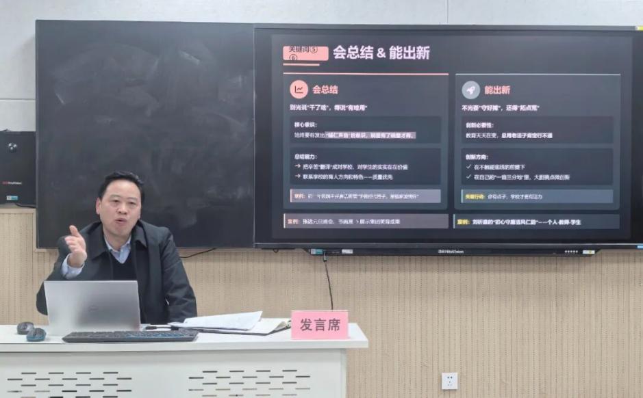 十一位“大德育”骨干依次分享,从不同维度展现了辅仁德育的创新与坚守。曾艺涛以校刊为文化阵地,推动流程规范化;刘军构建宿舍管理制度化、考核精细化、安全常态化的管理体系;刘析鑫创新打造“节气+廉洁”文化品牌,推动师生共创;吴白平系统规划体艺赛事,以赛促教;张达在艺术活动中精益求精,突出专业与品质;陈劲帆推动“活动育人”实现从“完成任务”到“滋养生命”的深刻转变;杨中华主动拥抱AI技术,赋能教育表达;邹德珍扎实构建心理健康预防与支持体系;刘航分享中层干部“枢纽”定位,强调担当与转化;刘薇系统构建学生会“选育管励”闭环机制;王勇则在多重角色平衡中诠释坚守的力量。他们的分享,既有理论思考,更有实践温度,生动诠释了新时代德育工作的专业内涵。