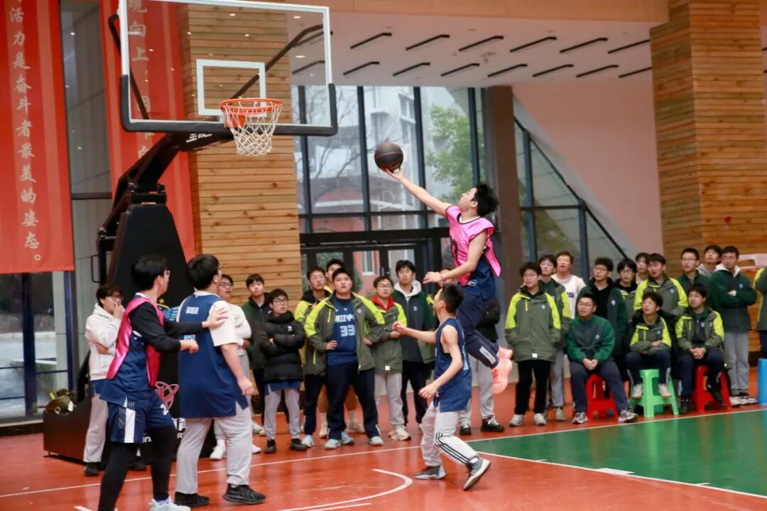 赛场上,各参赛队伍身着统一队服,以饱满的竞技状态投入比赛。球员们抢断时的敏捷反应、传球时的默契配合、突破时的迅猛身姿、投篮时的精准弧线,每一个动作都尽显专业与热血;防守端严密布防,进攻端火力全开,队员们用汗水诠释着“永不言弃” 的体育精神。赛场上,裁判员哨声、篮球撞击地面的节奏声,与观众席此起彼伏的加油助威声相互交织,共同构成了充满激情与活力的竞技氛围,充分展现了学校学子昂扬向上的精神风貌与精诚协作的团队意识。