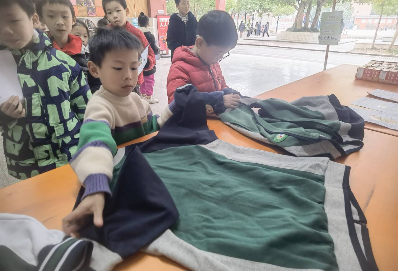 在一分钟计时内,孩子们需要拉好校服拉链,再将衣服对折、整理,叠得整整齐齐。这项挑战不仅考验动手能力,更是将生活技能的培养融入其中,自理能力直接“拉满”。