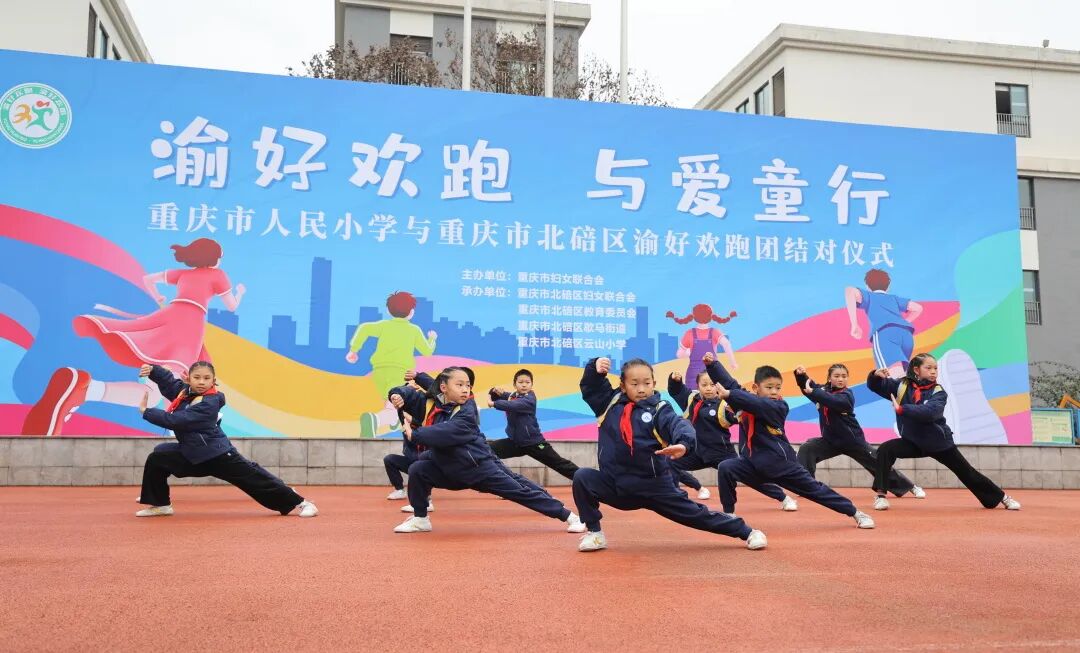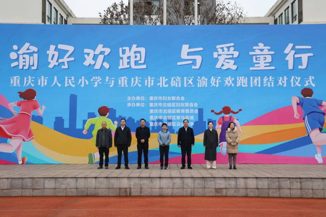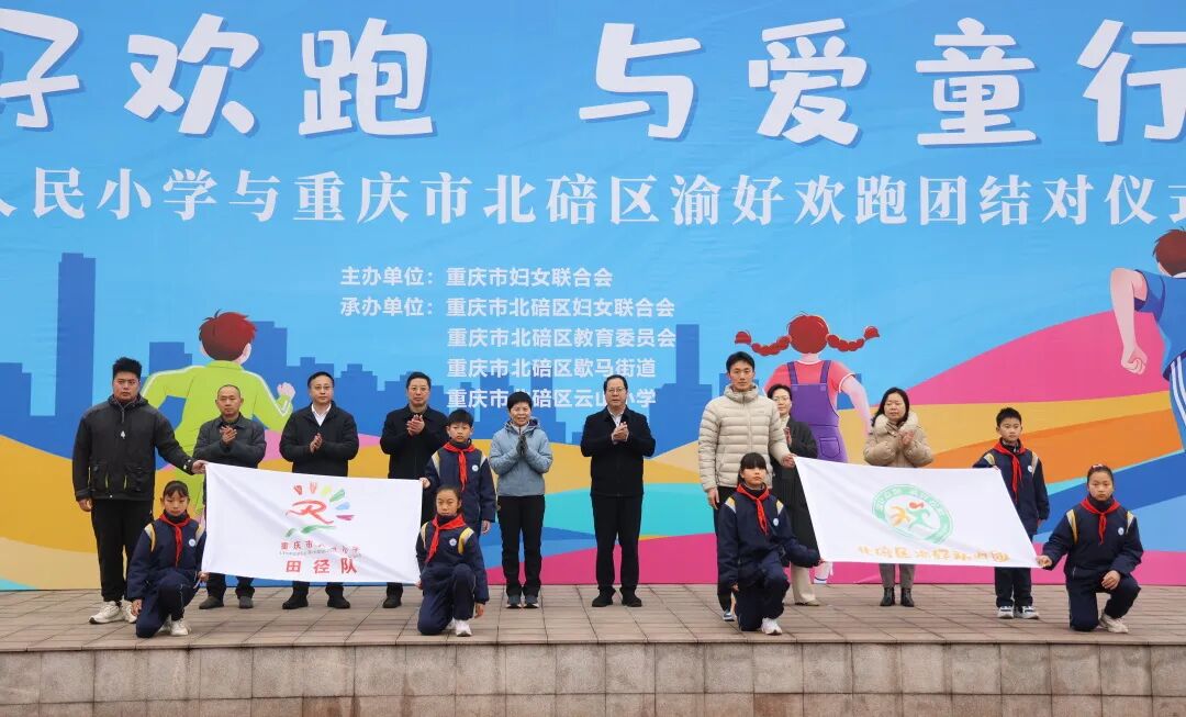随后,重庆市人民小学与云山小学“渝好”欢跑团正式牵手,重庆市妇联及北碚区相关领导、学校负责人共同出席,见证这场为爱同行的美好启程。