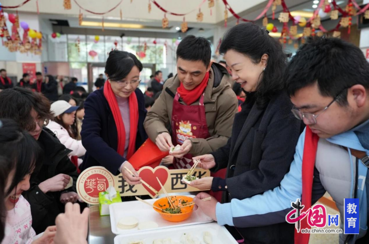 该校师生们还围坐一堂,亲手包饺子,体验传统年俗。大家在协作中感受动手乐趣,在热气腾腾的饺子里品尝到浓浓的团圆味与暖冬情。在丰盛暖心的团年午餐中,大家畅聊过往、展望未来。大家纷纷表示,这顿特别的团圆饭,既有家常菜的温暖,更添节日团聚的仪式感。