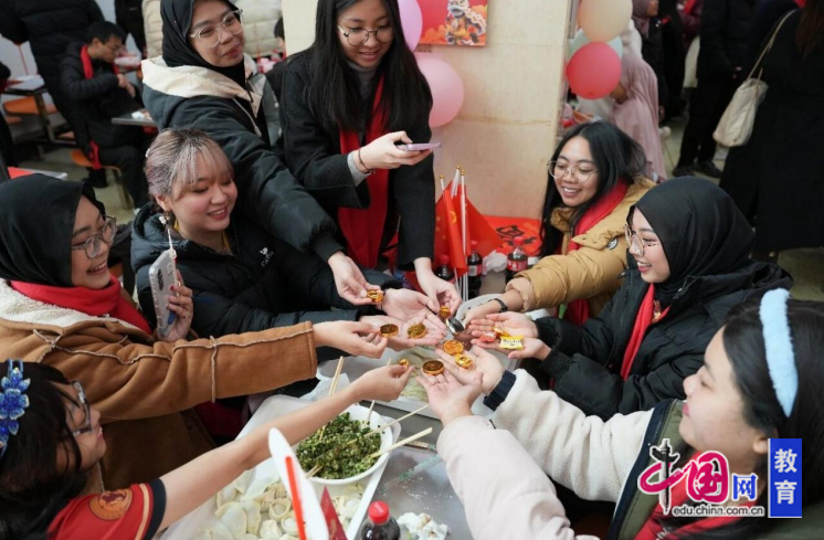 活动现场还设置了签到送祝福、趣味游戏集章、奖品兑换等互动环节。学子们在“猜灯谜”“钓锦鲤”等游戏摊位前流连驻足,欢声笑语不断。“虽然寒假留在学校,但一点也没觉得孤单。和老师、同学们一起玩游戏、看节目、包饺子,感觉特别温暖,像在家里一样。”该校经济学院2023级经济学专业本科生肖续润说道。该校食品与生物工程学院2025级食品与营养专业研究生杨博则表示:“学校为我们考虑得很周到,活动丰富又暖心。我将把这份关怀化作动力,更加心无旁骛,争取新的一年取得新的进步。”来自印度尼西亚、国际教育学院2025级汉语言文学专业留学生范月宏/Fadila Wina Bulan Astari也分享道:“这是我第一次在中国过春节,今天和来自不同国家的同学一起包饺子、写春联,让我在温暖中体会到了跨越文化的‘家’的意味,这份感动我会一直记得。”