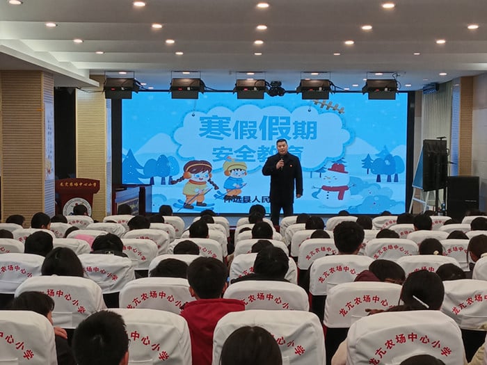 在寒假来临之际,为筑牢学生安全防线,1月28日下午,安徽省龙亢农场中心小学邀请法治副校长、怀远县人民法院法官褚宏泉到校,开展寒假假期安全教育活动。