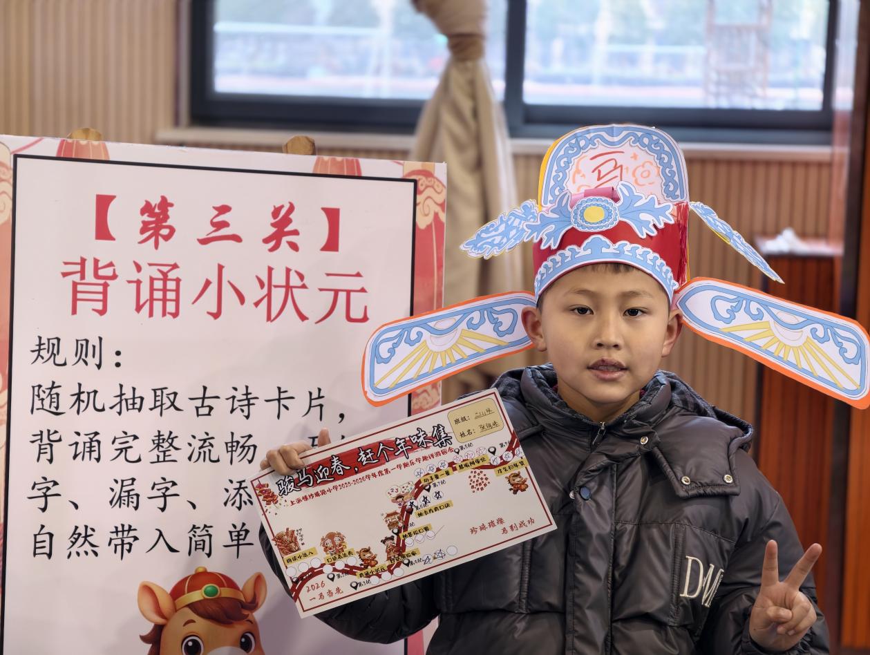 在上派镇珍珠路小学,一二年级“乐学趣评”游考活动在充满年味的场景中展开。孩子们挑战“拼读糖葫芦”“生活年货站”等关卡,在拼音、口算及才艺展示中巩固知识。活动践行“让每一颗珍珠都璀璨”的理念,让每位学生在趣味闯关中收获自信与成长。