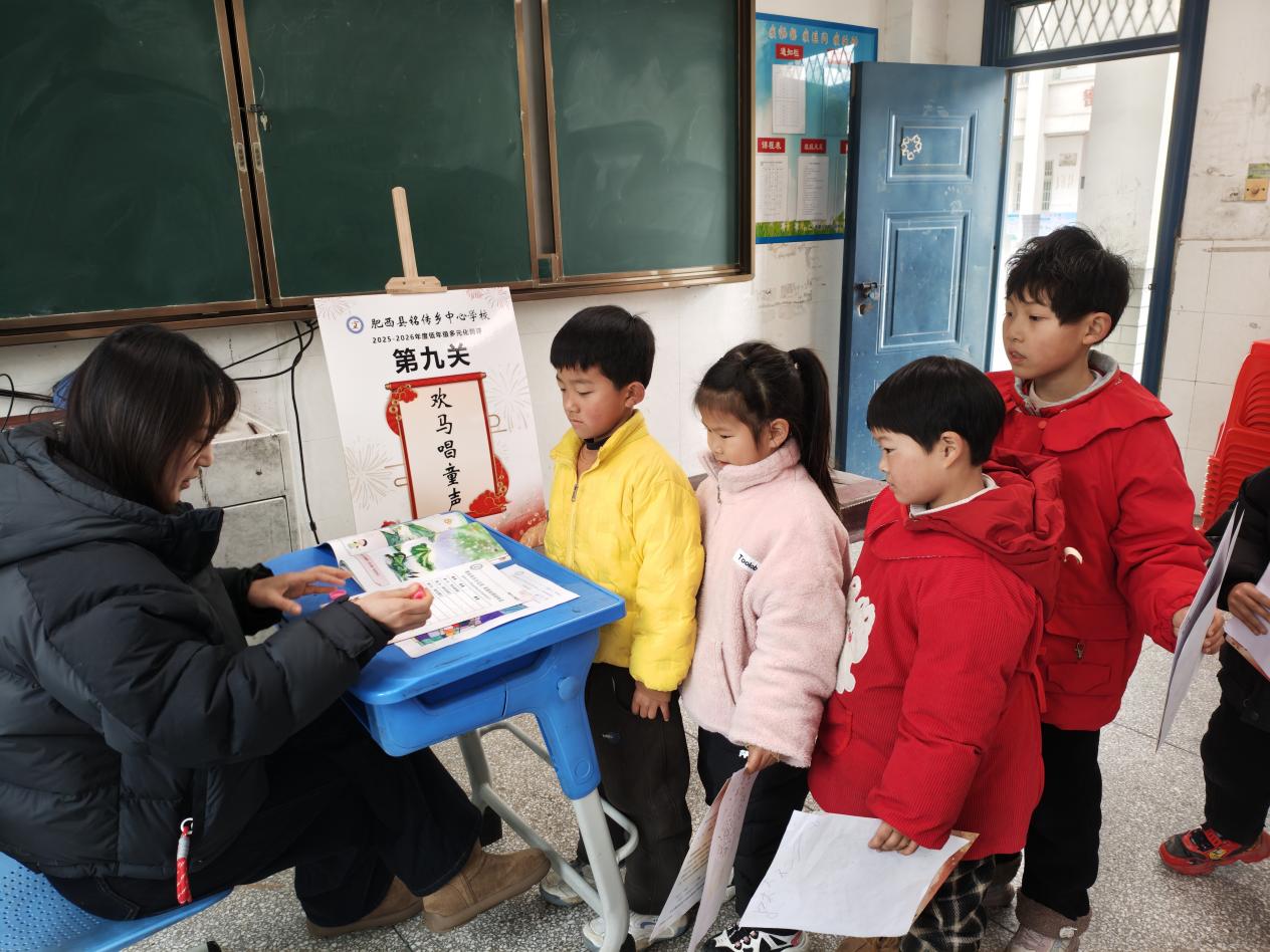 在铭传乡中心学校,一、二年级期末开展了“马年小勇士”无纸化闯关。孩子们手持闯关卡,挑战“灵马创拼音”“智马认时钟”等十个趣味模块,在鼓励声中大胆展示,完成了对学业成果与综合能力的生动检验。