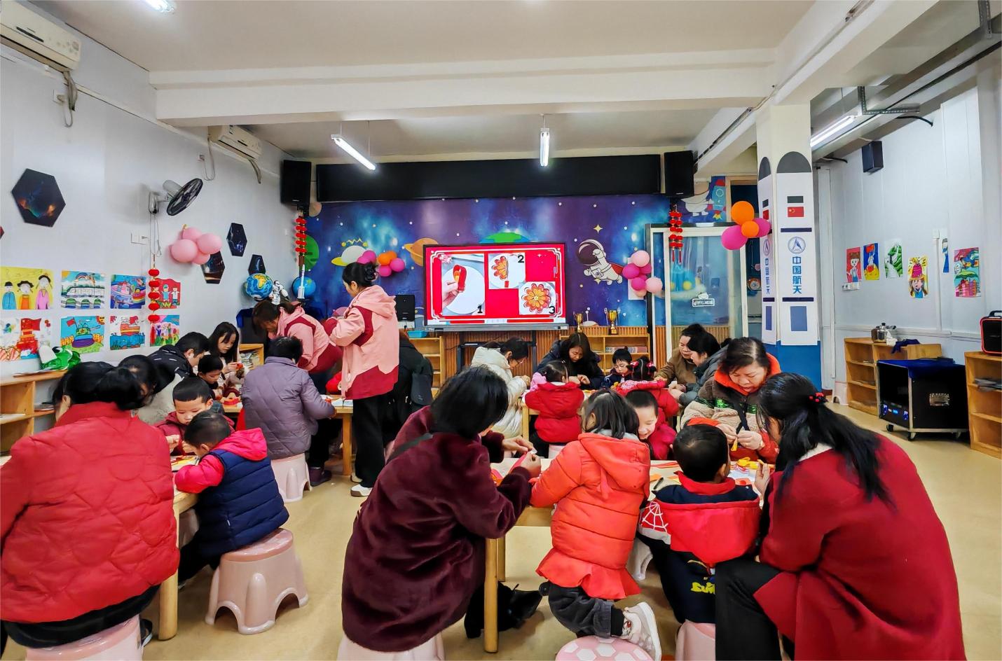 作品成果展览区里,绘画、手工等作品错落陈列,每一件都标注着幼儿的创意巧思与创作故事。家长们驻足观赏,或俯身询问孩子的设计灵感,或用镜头记录下这份童真印记,在一张张作品中,细细品读孩子笔下的奇妙世界与脚踏实地的成长足迹。