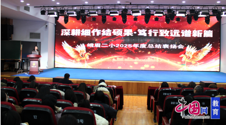 金蛇辞旧岁,骏马启新程。1月27日,峨眉山市第二小学校以“深耕细作结硕果、笃行致远谱新篇”为主题的2025年度总结表扬会在学校多功能厅举行,全体教职工欢聚一堂,细数耕耘收获,共话未来期许,在温馨热烈的氛围中共度美好时光。