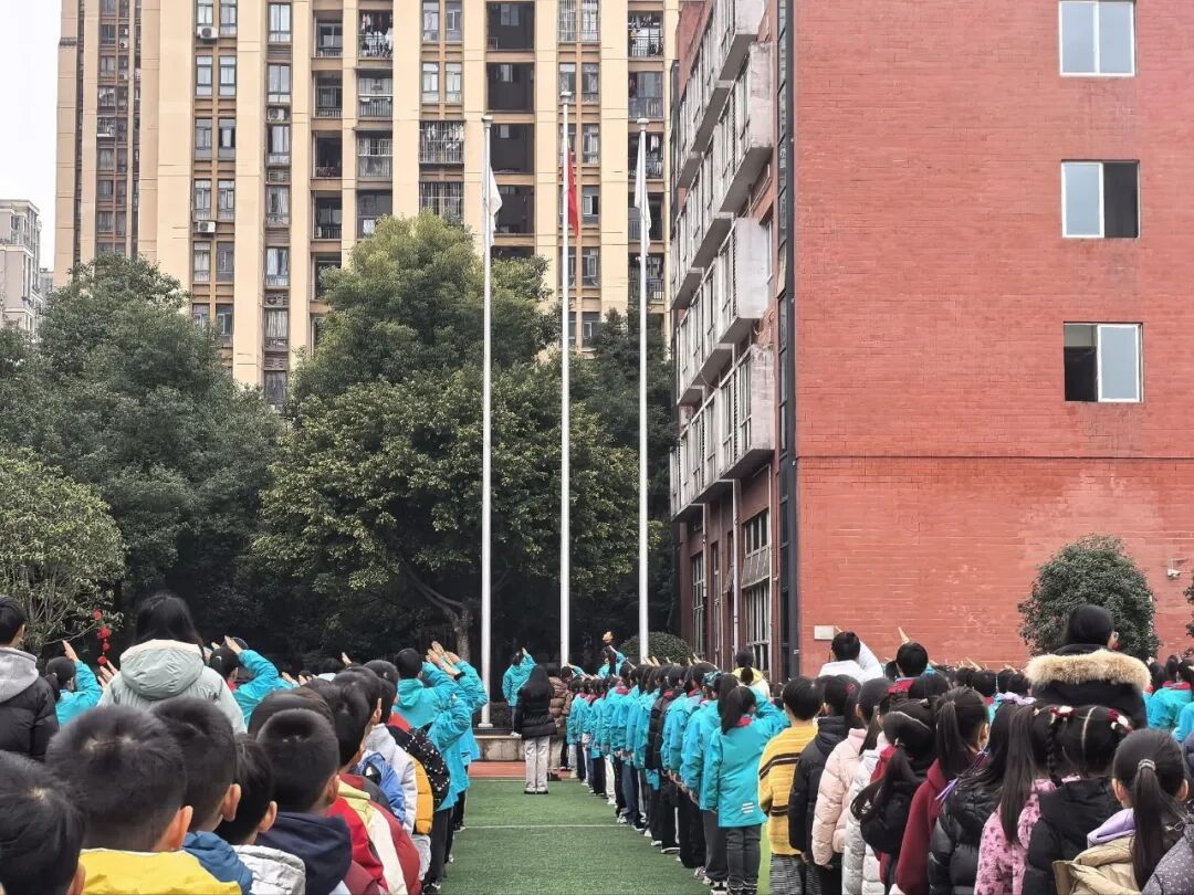 学校党支部书记刘颖波在致辞中,首先肯定了全体师生一学期的努力与突破,重点提及师生们在助力大渡口区创建全国文明城区中的积极表现——主动参与志愿服务、弘扬优良家风,用实际行动响应“创文没有局外人、没有旁观者”的号召。同时,他向孩子们送上寒假寄语,鼓励大家在假期里劳逸结合、安全出行,在阅读与实践中沉淀自我。