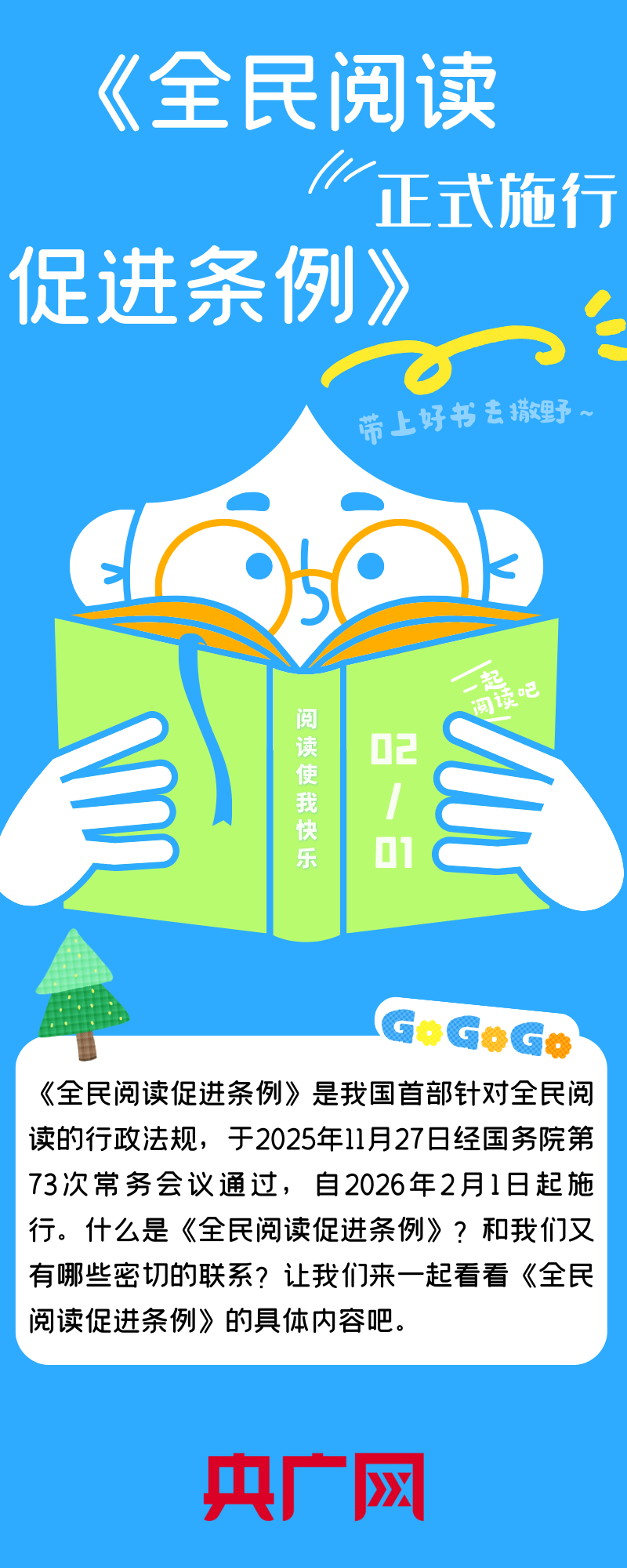 《全民阅读促进条例》于2026年2月1日起正式施行。什么是《全民阅读促进条例》?和我们又有哪些密切的联系?让我们来一起看看《全民阅读促进条例》的具体内容吧。