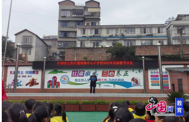典礼在庄严的升国旗仪式中启幕,江阳区通滩镇中心小学校全体师生肃立注目。升旗仪式后,该校师生共同唱响《世纪的约定》,用激昂旋律彰显新时代少年的责任担当,为典礼奠定庄重热烈的基调。随后,该校德育副主任赵老师总结本学期德育工作,肯定师生成效。同时,布置寒假实践手册作业,强调需认真完成,新学期将对优秀作业进行评奖表彰。该校教科室杨主任总结本学期教学成绩,肯定师生努力,明确假期学习生活安排,引导学生合理规划时间、自主提升。最后,杨主任为全体师生送上新年祝福。该校安办唐主任作假期安全专题讲话,围绕多领域安全知识进行普及警示。同时,特别提醒师生放假前务必关闭好教室门窗与电源,做好防火防盗工作。