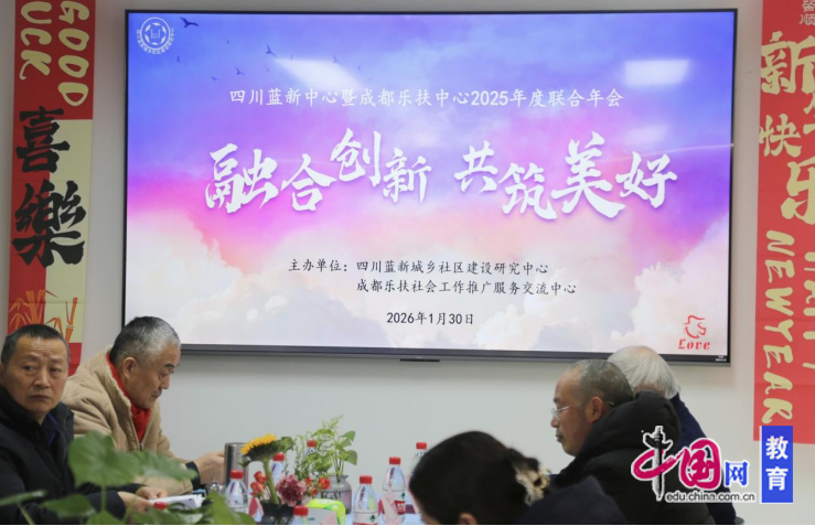 冬末蓉城,群贤毕集。1月30日,四川蓝新城乡社区建设研究中心与成都乐扶社会工作推广服务交流中心在四川时代专修学院联合举办了2025年度年会。本次年会以“融合创新·共筑美好——城乡社区建设与社会工作服务协同发展新篇章”为主题,汇聚了来自学术智库、实践合作社区、社会组织及两家主办机构的代表,共同总结过去、展望未来,探讨城乡社区高质量发展的创新路径。