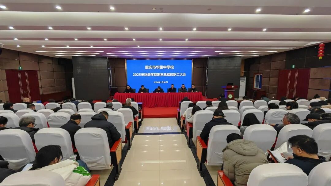 岁序更替,华章日新;弦歌不辍,聚力前行。为全面总结2025年秋季学期的各项工作,明确后续发展方向,凝聚全体教职工奋进力量,重庆市华蓥中学校于1月30日召开期末教职工大会。全体教职工齐聚一堂,回首耕耘历程,谋划发展蓝图。大会由党委副书记石开红主持。