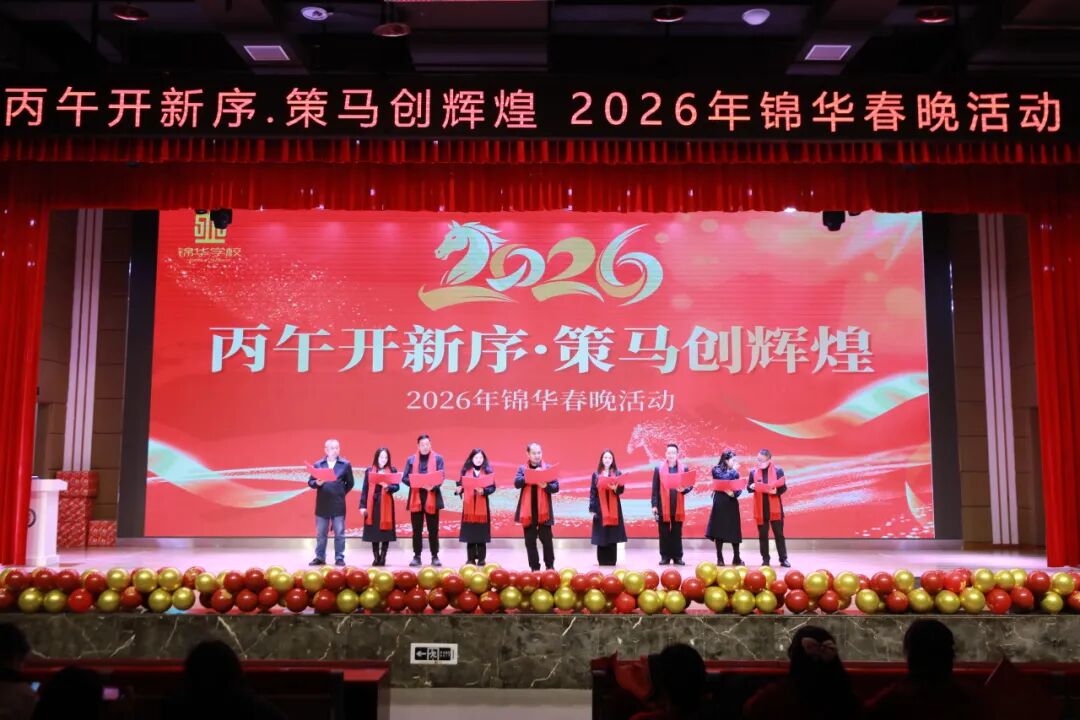 接着学期总结大会的喜悦余温,大家迎来一场别开生面的春晚——“丙午开新序·策马创辉煌”2026年锦华春晚活动。本次春晚由吕梦盈、尚阳和陈新意三位老师主持,他们以独特的魅力和激情四溢的表演,引领全场观众共同沉浸在这场视听盛宴中。